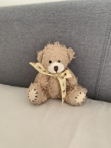 I’d ask you to reflect back to your childhood, or consider your babies/toddlers, and how important a cuddle from a teddy bear is for comfort and soothing. ‘Ted’ has been exactly that for us.